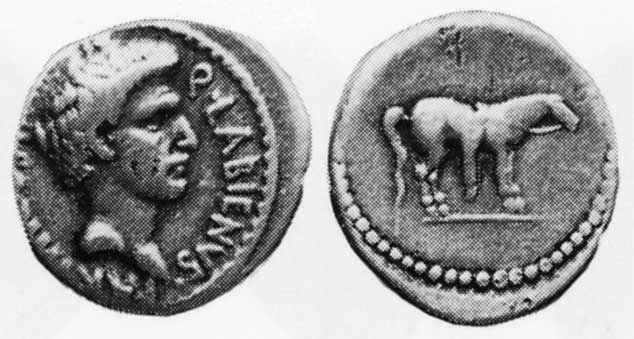 Alföldi, A. "Die Herrschaft der Reiterei, Gestalt und Geschichte", in Festschrift K. Schefold, 1967, p. 18 and plate 9.9, (aureus), plate 9.10 (denarius).