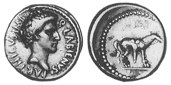 AR Denarius, 3.64 g (PDC PDC 32616) Mint/ mint traveling with Labienus, undated (c. 40-39 B.C.) Obv/ as above Rev/ as above Note/ S09 Photo/ by LHS Numismatik - Bank Leu/Münzen und Medaillen auction 3-4 Dec 1965, lot 966 (this coin) - Münzen und Medaillen AG 7 (1948), lot 513 (this coin) - J. Schulman (Amsterdam), Coll. Vierordt (5 Mar 1923), lot 508 (this coin) |
