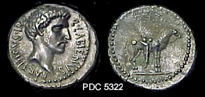 AR Tetradrachm Mint/ Antioch, Year 10 (c. 40-39 B.C.) Obv/ diademed head of Philip Philadelphos facing right, within a filleted border Rev/ Zeus seated left, holding Nike and scepter, with parts of the Greek legend ΒΑΣΙΛΕΟΣ ΦΙΛΙΠΠΟΥ ΕΠΙΦΑΝΟΥΣ ΦΙΛΑΔΕΛΦΟΥ. The date I appears in the exergue beneath Zeus, Year 10 of the Era of the Roman Province of Syria Note 1/ Labienus employed the same coin types as the last legitimate Syrian ruler, Philip I (Philip Philadelphos) Note 2/ These coins bear the city monogram of Antioch, indicating autonomy given to the city by Julius Caesar after Pharsalus, and Caesarean Era dates on coins minted from Year 3 (47-46 B.C.). The dates allow us to identify coins struck during Labienus' occupation of Antioch, 40-39 B.C. Photo/ by Praetorian Numismatics eBay Auction Oct 1999 - RPC I, 4133 |