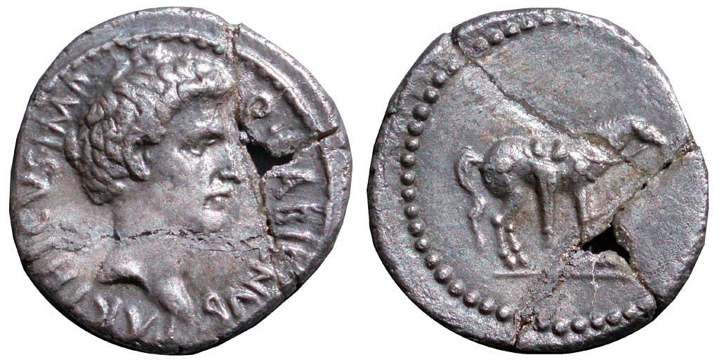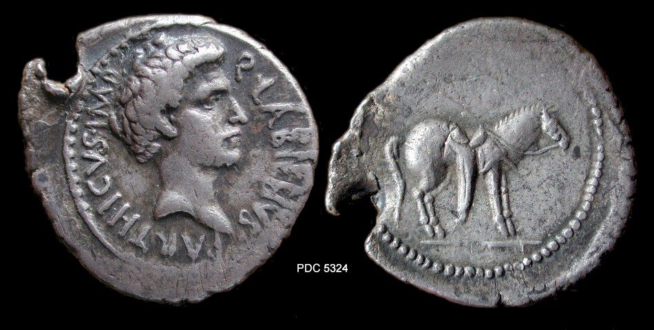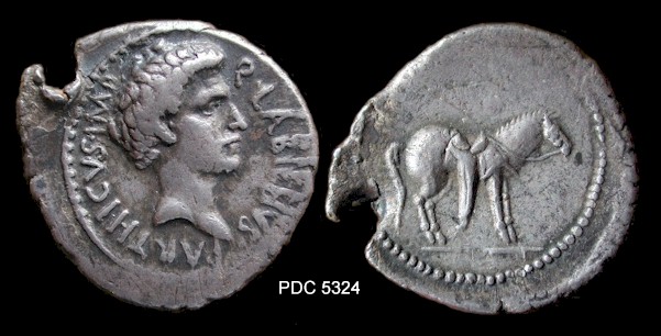 AR Denarius, 3.60 g (repaired) (PDC 58419) Mint/ mint traveling with Labienus, undated (c. 40-39 B.C.) Obv/ as above Rev/ as above Note/ S06 Photo/ by Andrew McCabe Additional image/ Lanz Numismatik - Lanz Numismatik, eBay sale (Feb 2009) (this coin) |