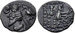 AR Tetradrachm 14.93g (PDC 15133) Mint: Seleucia Dated 280 ΠΣ [Δ]ΑΙΣΙ (BC 32) Obv: bust left with pointed beard wearing diadem and griffin-ended torque; a wart visible on forehead; circular border of pellets Rev: male wearing diadem seated left on throne; in right hand Nike stands right presenting wreath; in left hand, scepter; under throne, Greek letters ΠΣ; in exergue, Greek letters ΔΑΙΣΙ; seven-line Greek inscription (L54i); no border = ΒΑΣΙΛΕΩΣ ΒΑΣΙΛΕΩΝ ΑΡΣΑΚΟΥ ΕΥΕΡΓΕΤΟΥ ΔΙΚΑΙΟΥ ΕΠΙΦΑΝΟΥΣ ΦΙΛΕΛΛΗΝΟΣ Photo by Dr. Busso Peus Nachf. - Sellwood 54.2 [8 in db] - Peus 372 (30 Oct 2002), lot 647 (this coin) - Shore not listed |