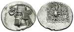 Vonones I (A.D. 8-12) AR Tetradrachm 13.28g 12h (PDC 59845) Mint: Seleucia on the Tigris Dated 322 ΒΚΤ ΥΠΕΡΒΕΡΓΕΤ (11 AD) Obv: bust left with long beard wearing diadem and three-band spiral torque with no visible end; ear visible, hair above diadem as ringlets; no wart; circular Greek inscription (L60i); circular border of pellets Rev: Nike walking left holding diadem in right hand, palm branch in left; in front, Greek letters BKT; in exergue, Greek letters ΥΠΕΡΒΕΡΕΤΑ; seven-line Greek inscription (L60ii); no border = ΒΑΣΙΛΕΥΣ ΒΑΣΙΛΕΩΝ ΑΡΣΑΚΟΥ ΕΥΕΡΓΕΤΟΥ ΔΙΚΑΙΟΥ ΕΠΙΦΑΝΟΥΣ ΦΙΛΕΛΛΗΝΟΣ Previous collection: Todd A. Ballen Photo by Classical Numismatic Group - Sellwood 60.3 [7 in db] - Triton XIII (5 Jan 2010), lot 707 (this coin) - CNG 69 (8 Jun 2005), lot 759 (this coin) - CNG E-Auction 156 (17 Jan 2007), lot 88 (this coin) - Shore 328 (same rev. die) |