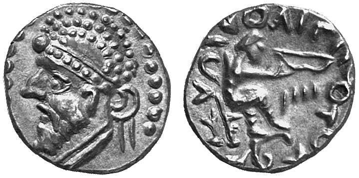 Vologases II (A.D. 77-80) AR Diobol 1.43g 14mm (PDC 24467) Photo by permission Atlantis, Ltd. - Sellwood 1989.3 Num. Chron. 149, pl. 42, 3 (type 3) - D. Sellwood, "New Parthian Coin Types" NC (1989), pl. 42, 3 |