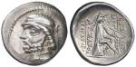 Phraates II (138-127 B.C.) AR Tetradrachm 16.05g (PDC 21532) Mint: Seleucia on the Tigris Obv: short-bearded bust right, wearing diadem, earring visible; no symbols; circular reel and pellet border Rev: bearded male deity enthroned left, wearing chiton and kalathos; in extended right hand holds wreath-bearing Nike, who crowns him to right; in left hand, cornucopia with fruits; two monograms in exergue; no border; four-line Greek inscription = ΒΑΣΙΛΕΩΣ ΜΕΓΑΛΟΥ ΑΡΣΑΚΟΥ ΝΙΚΙΦΟΡΟΥ Photo by Classical Numismatic Group - Sellwood 17.3 [3 in db] - Triton VII (12 Jan 2004), lot 407 (this coin) - BMC Parthia not listed - Le Rider, Suse sous les Séleucides et les Parthes (1965), pl.LXX, 23 - Mitchiner ACW not listed - Shore not listed |