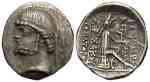 Phraates II (138-127 B.C.) AR Tetradrachm (PDC 27999) Mint: Seleucia on the Tigris Obv: short-bearded bust right, wearing diadem, earring visible; no symbols; circular reel and pellet border Rev: bearded male deity enthroned left, wearing chiton and kalathos; in extended right hand holds wreath-bearing Nike, who crowns him to right; in left hand, cornucopia with fruits; two monograms in exergue; no border; four-line Greek inscription = ΒΑΣΙΛΕΩΣ ΜΕΓΑΛΟΥ ΑΡΣΑΚΟΥ ΝΙΚΙΦΟΡΟΥ - Sellwood 17.2 [0 in db] |