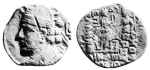 Pacorus II (A.D. 78-105) AR Tetradrachm 13.35g (PDC 20554) Mint: Seleucia on the Tigris Dated 404 ΔΥ [Δ]ΑΙΣΙΟ[Υ] (93 AD) Obv: bust left with short beard wearing diadem and tiara decorated round crest with "hooks"; four-band spiral torque with no visible end; lock of hair visible on forehead; ear visible; behind, Greek letter Β; circular border of pellets Rev: male wearing tiara seated left on throne, extending right hand, grasping hilt of sword in left; to his left, Tyche stands right presenting diadem in right hand, but has no scepter in left; above diadem, Greek letters ΔΥ; horizontal bar on throne back; in exergue, Greek letters ΔΑΙΣΙΟΥ; seven-line Greek inscription (L77i); no border Provenance: Bank of England gift Previous collection: (probably) H.P. Borrell Photo from Catalogue of the Coins of Parthia (BMC Parthia, 1903) - Sellwood 77.2 [4 in db] - BMC Parthia, p.200, 45; plate 31, no. 1 (Pacorus II) (this coin) - Longpérier p.131; pl. xv, 177 (this coin) |