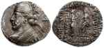 Pacorus II (A.D. 78-105) AR Tetradrachm 12.43g (PDC 31757) Mint: Seleucia on the Tigris Dated ΑΡΤΕΜ Obv: bust left with short beard wearing diadem and tiara decorated round crest with "hooks"; four-band spiral torque with no visible end; lock of hair visible on forehead; ear visible; behind, Greek letter Δ; circular border of pellets Rev: male wearing tiara seated left on throne, extending right hand, grasping hilt of sword in left; to his left, Tyche stands right presenting diadem in right hand, but has no scepter in left; above diadem, Greek letters ΔΥ; horizontal bar on throne back; in exergue, Greek letters ΑΡΤΕΜ; seven-line Greek inscription (L77i); no border Photo by Dmitry Markov Coins & Medals - Sellwood 77.4-7 (year illegible, month ΑΡΤΕΜ) [1 in db] |