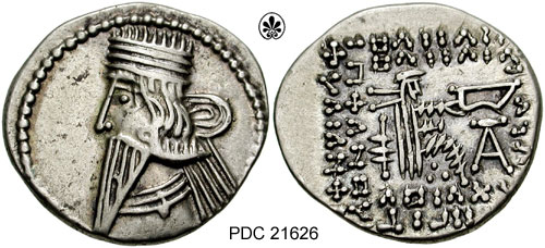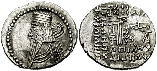 After his challenge ended, some existing coins of this failed rebel were assimilated into the coinage of Vologases by cutting away the fourth pendant.