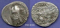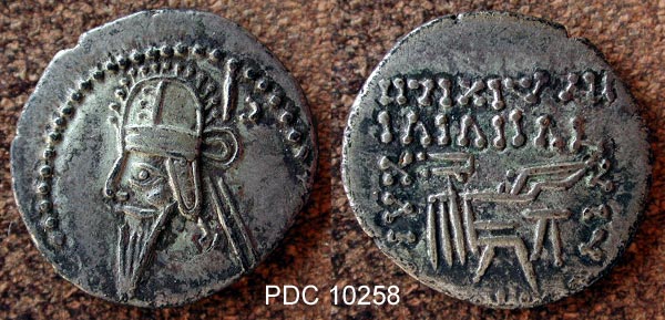 This page contains all the drachms of Vologases VI, Sellwood type 88, that are in the Parthian coin image collection as of 8 Dec 2002, and for which I have permission of the copyright owner. Please notify me of any duplications, misattributions or other errors. "PDC" identifies the image database accession number. Images are sorted by Sellwood number, then weight.